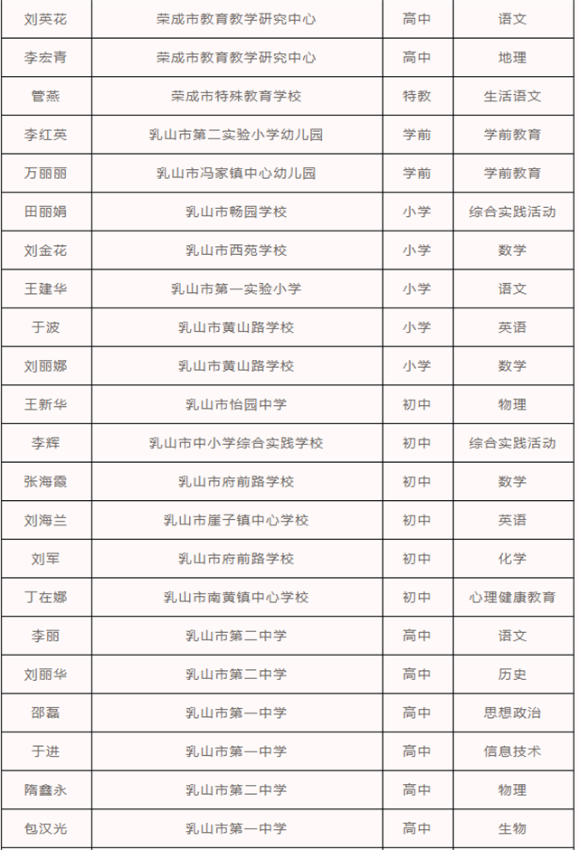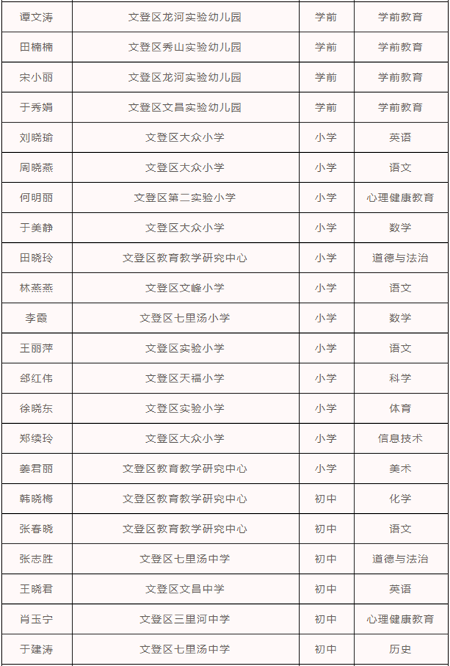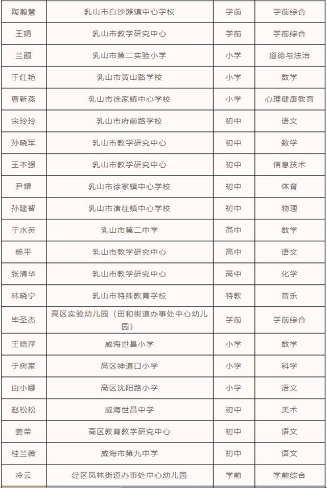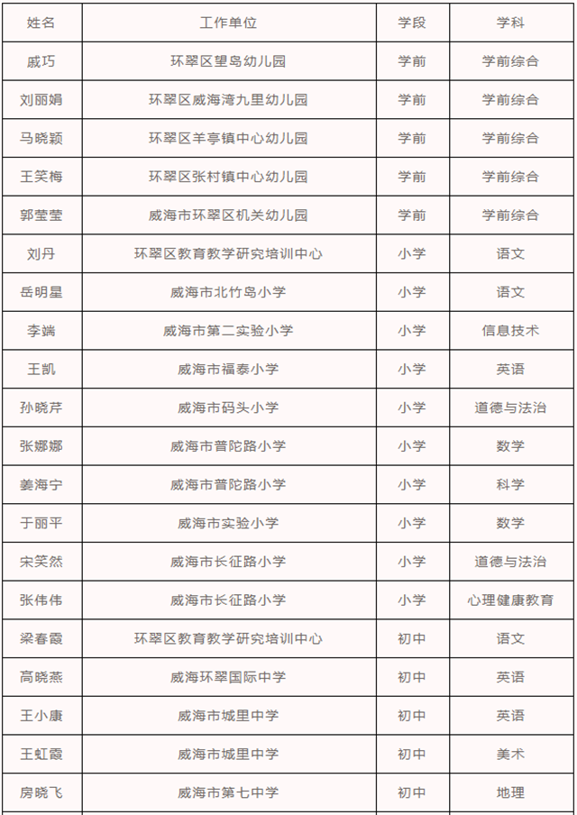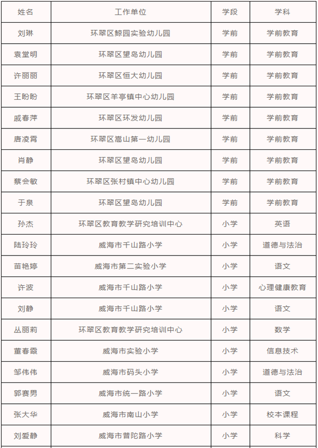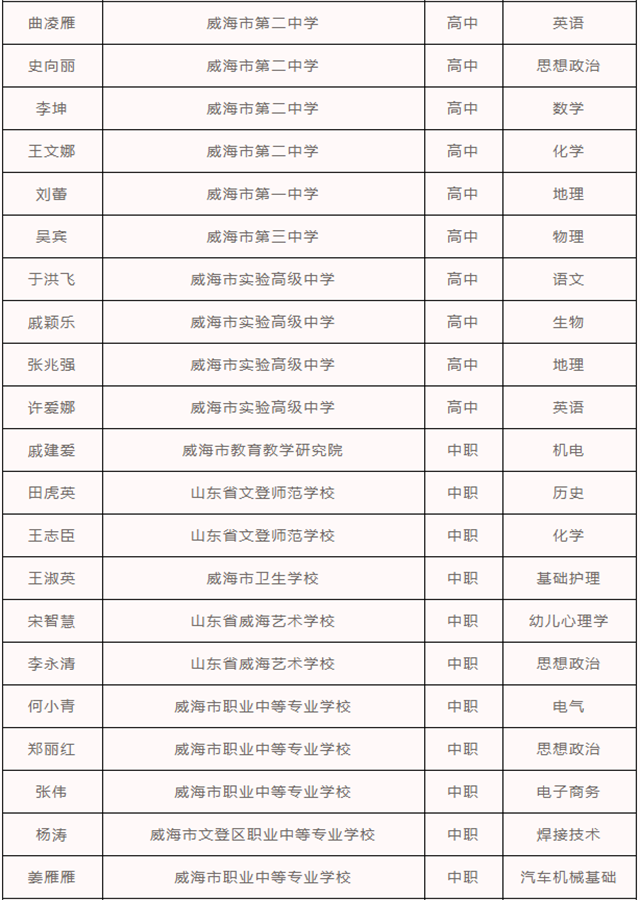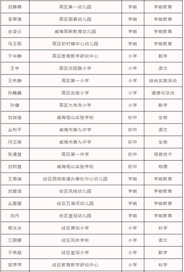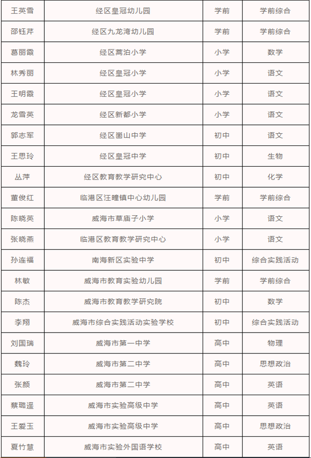 威海临港经济技术开发区实验学校 威海市师德标兵名单 (100名)