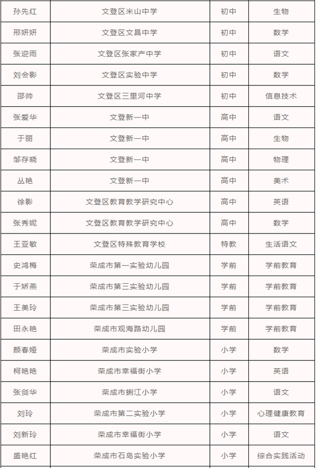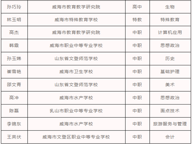 夏俊平 威海市实验外国语学校 威海市第十三届教学能手名单 (199名)